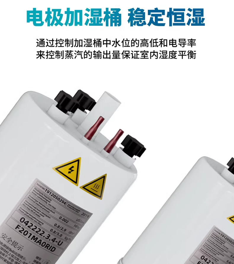 本系統配置有獨立的加濕器,能多點自動控制加濕量,擯棄了采用電磁閥控制加濕方法,避免了電磁閥在高溫高濕環境下工作容易產生故障的缺陷。該加濕器設計新穎,結構簡潔。其接觸水的部分全部采用不銹鋼材質。